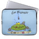 Funny fat hungry green fish fishing cartoon laptop sleeve