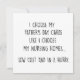 this was so well received by my son and husband -- they both have a great sense of humor -- and this card was done with creativity and fun. BIG HIT. BIG BIG HIT !! i'm always impressed by zazzle's quality - card stock, printing and color ! excellent !