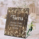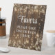 Funny Favors Signature Script Wood String Lights Table Sign - This elegant brown wood and white Table Sign, featuring lovely string lights and white floral can be personalized with your Wedding details (the product is not actually made from wood).