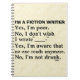 If you're a fiction writer, you've likely heard all the questions answered on this funny design. Now, you can save time conversing with the jerks who ask these inane questions by displaying the answers. That means more time for you to hide out in your office lair, writing bumbling characters based on these buffoons. This is the perfect humorous design for you or your favorite author friend.