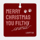 Bring a touch of festive fun to your home this Christmas with our funny pet ornament. Not just any ornament, but one that features a full photo of your beloved dog, complete with the playful saying 'Merry Christmas you filthy animal' Designed to spread joy and humor this festive season, you can customize it with your pet's name for that personal touch. A unique keepsake to enjoy year after year.