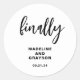Going casual or informal? Use this funny black and white wedding sticker / label with finally in hand lettered script typography. See coordinating items in our shop, Enchanted Finch.