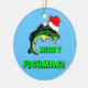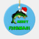 Merry Fishmas! Funny and hilarious jumping fish with santa hat wishing you a merry christmas the only way he knows how. Humorous fishing Christmas gifts ornaments to decorate the holiday Christmas tree for the fisherman.