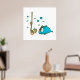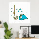 A funny cartoon style fishing design with a hook, worm and a blue fish. This design looks really effective on these Poster