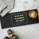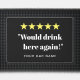 A fun gift for bartenders, bar owners, or a home bar area, this design features bold simple text in white over an elegant black background with a 5 star review "Would drink here again!". Five bright yellow stars are above the bold text to validate this review. Personalize with your bar name, business name, family name, etc to create a unique bar mat. It makes a great conversation starter at the bar and has a light-hearted appeal.