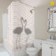 You've just walked in on this loving flamingo couple having a shower! On a pink striped shower curtain, the silhouette of the these flamingoes show through the curtain like a shadow. This set is so sweet, and adds an unexpected touch of humor to your bathroom decor. There are matching towels and bath mat for this set that feature the flamingoes, the pink stripes and some flamingo footprints. This is a great set for a quirky couple or anyone who loves birds :)