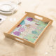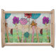 Featuring funny flowers with tall stems cut from colorful designer cardstock resulting in various patterns, and hand-painted as Mixed Media work of art, making this serving tray a most delightful piece for your home.