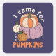 Funny four-pumpkins illustration. purple background and the saying: I came for the pumpkins. Perfect fall decoration for everyone, who loves cute pumpkins and funny sayings.
