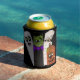 Can Cooler Koozie Sleeve printed with Funny Frankenstein, Ghost, Invisible Man and Pumpkin artwork design image TheFabricSeal at Zazzle is a grand fun addition in our Halloween Collection featuring four Halloween fan favorites. This fun design of wooden ice cream stick figure animated cartoon characters is in celebration that Halloween Is Every Day. Frankenstein escaped from his castle in Geneva, Switzerland. Ghoulish Ghost with bed sheet cover and goofy scary peekaboo eyes. The Invisible Man is all bandaged and wrapped up for a real good time. The carved Jack O Lantern Pumpkin is ready for lighting up the Happy Halloween spirited glow all around the world. Color palette tones of black, white, gray, grey, tan, beige, brown, orange, purple, green, pink and red colors. Please check out all of our great Halloween art design and products in our shop. Thank You 👻🧛♀️🦹🏻♀️👀🤡