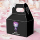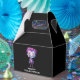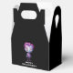 Tiny favor box with a cute illustration. Frankenstein monster with pink and purple hair and a dapper coat and tie.