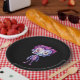 Paper plates with a cute illustration. Frankenstein monster with pink and purple hair and a dapper suit and tie.