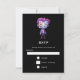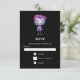 An RSVP card with a cute illustration. Frankenstein monster with pink and purple hair and a dapper suit and tie.