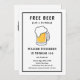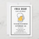 Celebrate a milestone with this humorous and minimalist birthday invitation. Perfect for a guy's party, this design features a bold, cheeky joke about "FREE BEER" that's sure to get a laugh. The simple and modern black and white design with a frothy beer mug illustration sets a fun, casual tone for a birthday bash. This fully customizable invitation template is easy to personalize with all your party details. It's a great choice for a beer-themed party, bar crawl, or any casual gathering to celebrate turning legal.