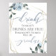 Dusty Blue Floral to match your wedding theme, Funny Open Bar Signage for your reception - Tonight's Drinks are Free, Tomorrow's Stories will be priceless! . Watercolor roses, leaves and berries in modern chic dusty blue surround a geometric terrarium style gold frame with sage greenery. Customize text, font style, color and size. Original artwork created for the BarefootBride™ by © WhimsicalArtwork™ - This is part of a complete Wedding Stationery Suite with matching wedding, baby shower and other event stationery.