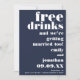 A funny bold typographical design to invite your guests to save your wedding date. Fully customisable. The typography is all aligned to the right, with white typography at the top, Free Drinks, followed by And We’re Getting Married Too in white, with your names, wedding date and location in a mix of gold and white. A navy and white stripe background is on the back.