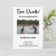 Introducing our Funny Free Drinks Save the Date Card! Captivate your loved ones with this delightful and unique invitation that exudes style and charm. With a picture on the front, featuring a striking photo image and a captivating script typography, it beautifully captures the essence of your special day. Against a crisp white background, the black text font stands out elegantly, creating a visually pleasing contrast.