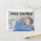 Save the date postcards that are for the fun couple who can't wait to share their wedding date with their family and friends. Funny "Free drinks (and we're getting married) design is customized with your opaque photo on the front. Add your return address and wedding details to the backside of the postcard.