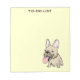 French Bulldog Lover's Notepad. Fawn colored light tan cartoon French Bulldog with huge tongue. Text can be personalized. Cute paper notepad for work, to-do lists, school, and grocery lists. Makes a cool little gift for a friend for family member who loves Frenchies. Available in more paper colors. Visit Jenn’s Doodle World for many more dog breed cartoons and fun gifts for animal lovers.