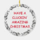 Funny food pun Christmas holiday ornament. Realistic photo of fried chicken and mashed potatoes. Have a cluckin's amazing Christmas!