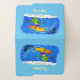Our funny lizard surfing with sharks. Add your own text to make it special.