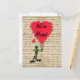 A vintage inspired change of address moving announcement card with a funny cute frog holding a bunch of red love heart balloons, on a distressed letter background, easily let your friends know your new address, remember to change the text or delete.