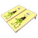 Natural Wood Cornhole Set, Yellow and Purple bags