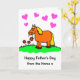 Cute cartoon of a contented pony munching on a tasty flower for Father's Day. Message reads 'Happy Father's Day from the Horse x'. Card has a white background with pink hearts and black lettering. Inside the card reads 'I can't help it if she loves me more than you'. Everyone knows that a woman loves her horse more than she loves her husband! Easily personalize this card by editing the template text on the front and inside. Thanks for viewing my designs - perfect for every horse Daddy!