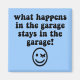 What happens in the garage, stays in the garage! Funny man cave garage shirts, tshirts for men and some women who hang out in the garage with their friends. Humorous man cave tees with winking smile face.