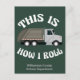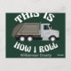 This funny postcard for a refuse truck driver features a grey garbage truck inside the hilarious phrase This is How I Roll. A cool pop culture reference for a trash truck driver who likes modern humor. Cute personalized postcards for garbage vehicle drivers with their custom text.