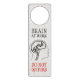 Funny Do Not Disturb door hanger for work or study featuring an illustration of brain with cogs and gears. You can personalize this door hanger with custom text.