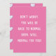don't worry you will be back to normal soon, well normal for you, pink cute card with a back heartbeat pattern. Great for someone who has heart surgery or got operated