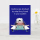 Doctors are shocked by what they found in your system, reads this funny get well greeting card, which features a drawing of two expressively surprised doctors reading the patient's chart. The inside rescues the reader from the comical implication of medical trouble by capitalizing on the recipient's love for chocolate. The card is designed with a BFF in mind, family member, a coworker, or anyone who is recovering from a health issue requiring a hospital visit or a few trips to a physician. Either way, he or she will delight at the words "Normal stuff. They expected to find only chocolate."