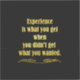 A motivational quote in yellow text stands out against a black background, emphasizing the value of experience gained from unmet desires. Ornate decorative lines accentuate the message below.