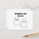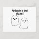 funny postcard to celebrate halloween with good and funny vibes, funny ghost " marshamallow or ghost, who cares!"