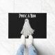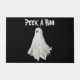 Doormat Welcome Door Mat with customizable text template Peek A Boo typography and printed with a Funny Ghost Of Halloween Past Drawing hand drawn graphic art design artwork illustration by TheFabricSeal print on demand shop at Zazzle.com #ZazzleMade ©️Original. https://www.zazzle.com/store/thefabricseal