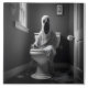 Funny ghost sitting in toilet ceramic tile
