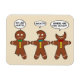 Funny gingerbread men in parody, spoof, to the bunny rabbits that says "My butt hurts". These 3 funny gingerbread men cookies with speech bubbles. The first gingerbread man has a bite on his leg and he says: "My Leg Hurts!", the other one has a bite on his ear and he says: "What?", the third one's eyes has been eaten and he says: "Where are you guys?". Especially fun for the Christmas Holiday Season. Cute Gingerbread man cartoon.
