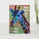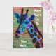 Original photograph of a sweet faced Giraffe animal. Front states "Hope You're Up To Your Neck..." and inside states "...in birthday greetings and many blessings. Happy Birthday!" for a cute greeting for kids and adults. Photograph given special effects to highlight a graphic painted style. You can add more text as you like or leave as is!
