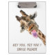 Funny Clipboards Giraffe Tongue Out and Playful Wink with Text Smile Cartoon Drawing Clipboard - Customizable - or Choose / Add Your Unique Text / Font / Size / Colors - Make Your Special Presentation / Office Supplies / Stationery - Resize and move or remove and add elements / image with Customization tool ! Drawing and Design by MIGNED. You can also transfer my designs to more than 1000 Zazzle products. Smile - Be Happy :)