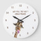 Customizable - Funny Clocks with Happy Giraffe Tongue Out and Playful Wink Cartoon Drawing with Text Smile - or Choose / Add Your Unique Text / Font / Color / Size - Make Your Special Clock Gifts - Resize and move or remove and add elements / image with Customization tool ! painting and Design by MIGNED. You can also transfer my designs to more than 1000 Zazzle products. Choose color / font / size ! Smile - Be Happy :)