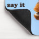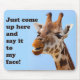Funny giraffe mousepad with a closeup image of a giraffe's face. Text says, "Just come up here and say it to my face!"