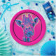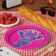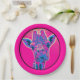 A funny pose from a cute giraffe - sticking out his tongue! Funky cheerful neon colors of pink and blue. Fun sixties retro pop art style.
