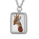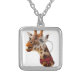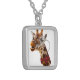 Funny Giraffe with Bowtie and Monocle Silver Plated Necklace