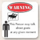 Funny Goat Saying- 'Warning, This person may talk about goats at any given time'
