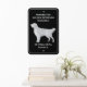 Here's a fun outdoor sign for the Golden Retriever dog owner! It shows a silver silhouette Retriever, with text that says "PARKING FOR GOLDEN RETRIEVER FANS ONLY" and "All others will be barked at". The text is customizable, so you may change it to anything else that you prefer. The image and text are shown on a black background, which you may also change by choosing to "Customize".