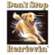 A funny golden retriever T-shirt with parody lyrics "Don't Stop Retrievin'".