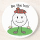 Funny golf coasters with a ball dressed up to play golf, saying "be the ball".