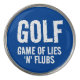 These funny "Golf" (and, as an explanatory sidebar, in fine print "Game of Lies and Flubs") golf ball markers are the perfect gift idea for the golfer who has a love-hate relationship with this game!