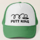 Funny golf hats | Putt King. Cute sports gift idea for men and women golfers. Black and white golf ball and putting hole design. Golfing humor.