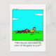 Enjoy spreading the laughter with this hilarious golf humor postcard by artist Bill Abbott. Wonderfully funny and slightly sarcastic cartoon characters in hilarious situations and settings, great fun for the wonderfully funny and slightly sarcastic character you know. Bill Abbott's cartoons have appeared in Hallmark U.K., Reader's Digest, Saturday Evening Post and other fine magazines!